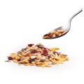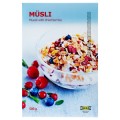 В состав мюсли входят овсяные, пшеничные и кукурузные хлопья, а также тыквенные семечки, клюква, черника, малина и др.